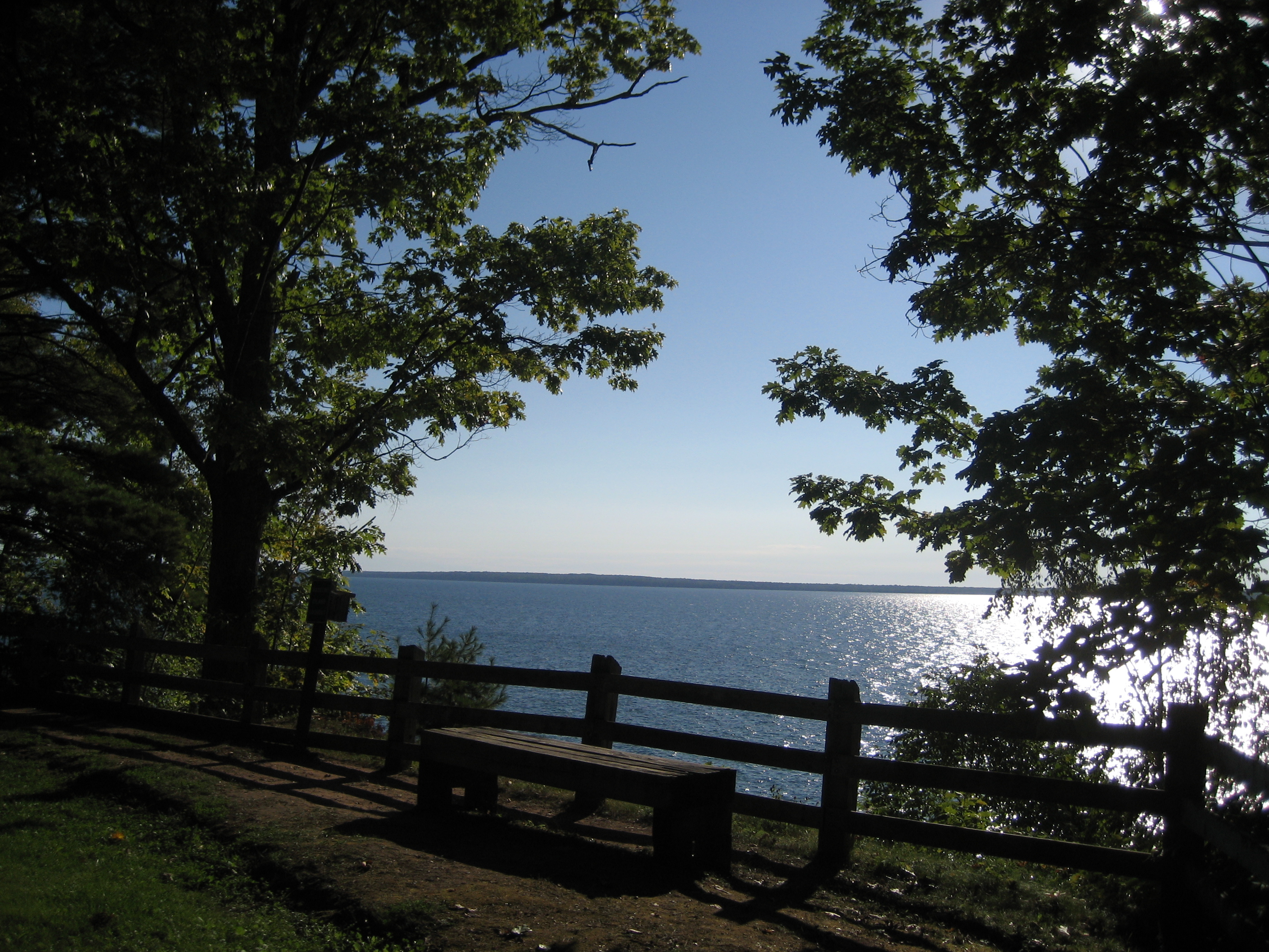 This was our view of Lake Superior from our campsite on our last trip. The strip of land that you can see in the distance is Madeline and then Basswood Island of the Apostle Islands. That would mean that we were on the mainland at Bayfield, WI.