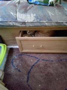 Yep. That pretty well sums it up. Buffy found the back way to get into the drawer. Meanwhile Katya during the day is known as the lump under the sleeping bag.